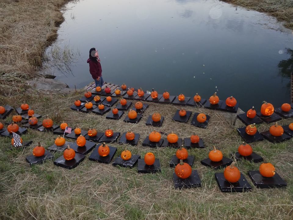 The annual Pumpkin Float will be held in Pope John Paul II Park on Tuesday, October 16 at dusk. Show up after 5:00. Attendees' carved and lit Jack-O-Lanterns will be released around 6:00 pm. (Photos by Jessica Mink)