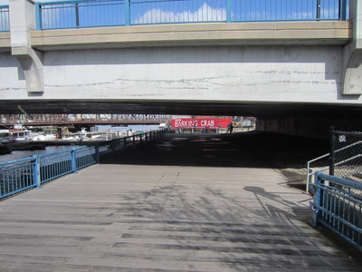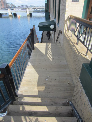the South Bay Harbor Trail along Fort Point Channel following that path, up and down stairs along the