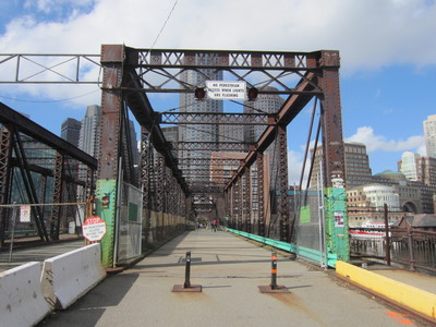 bicycle/pedestrian bridge which crosses the tracks between Paul Revere Park in Charlestown and
