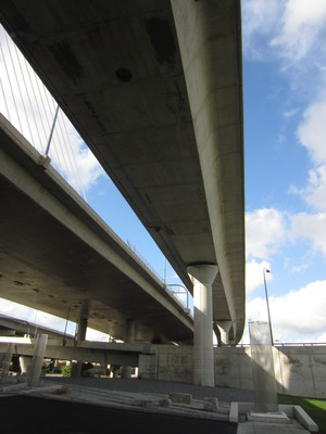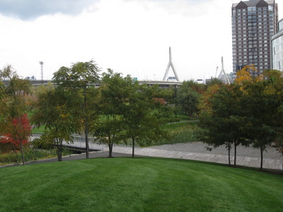 I wandered around beneath Boston's iconic bridge, checking out the paths which almost cross the river