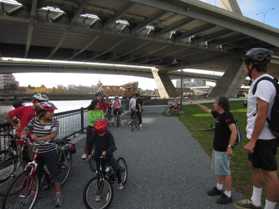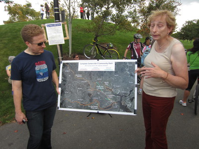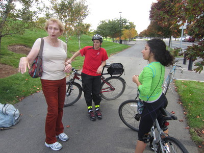 and the Charles River and downtown Boston. The Friends of the Community Path led groups by bike and on foot along the