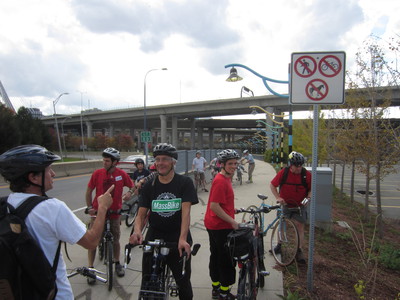 The bike group split to see the new North Bridge and visited the quirky Millers River Path as well before heading toward Somerville.
