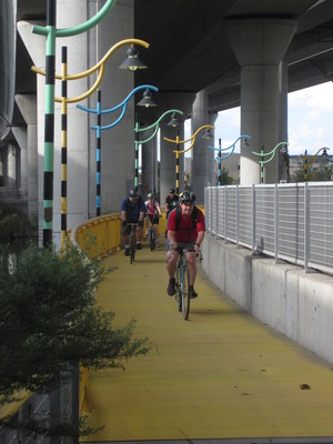 If you slow down, the Greenway is a pleasant place to bike and stop for a quick crepe or cheese sandwich for lunch.