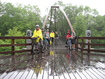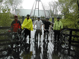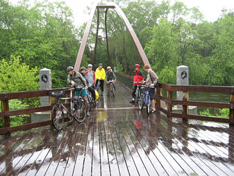 Cyclists at the new Charles River bridge in Newton |