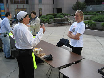 Shannon from Commuteworks talks to a SPH commuter