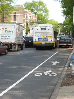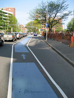 Bike lane at intersection of Broadway and Hampshire