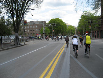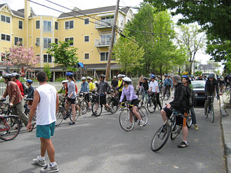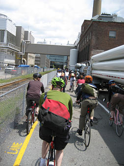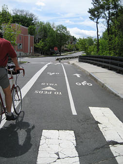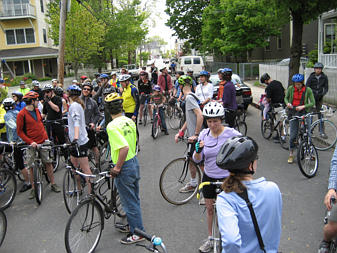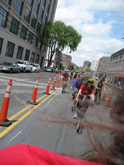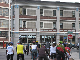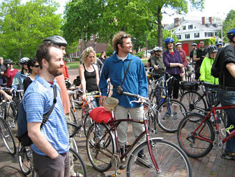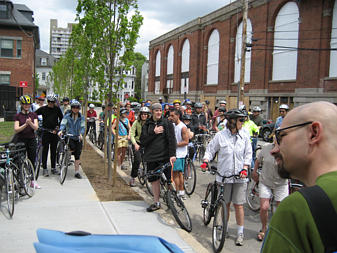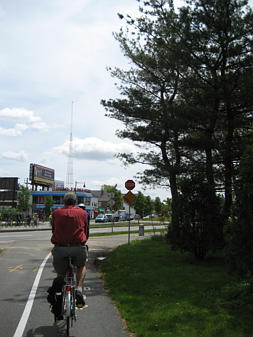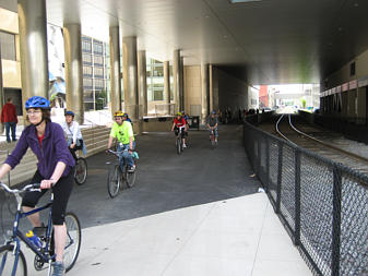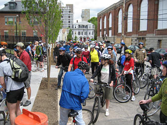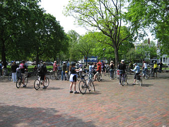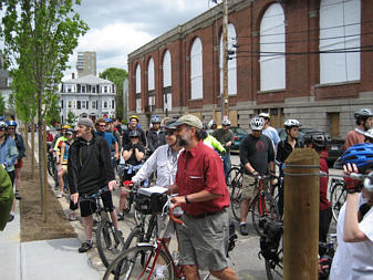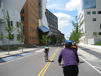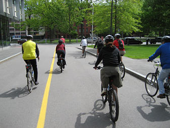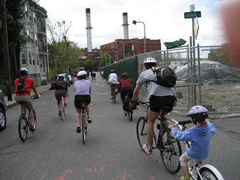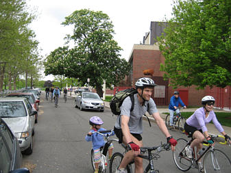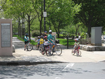 Family of cyclists on the Southwest Corridor