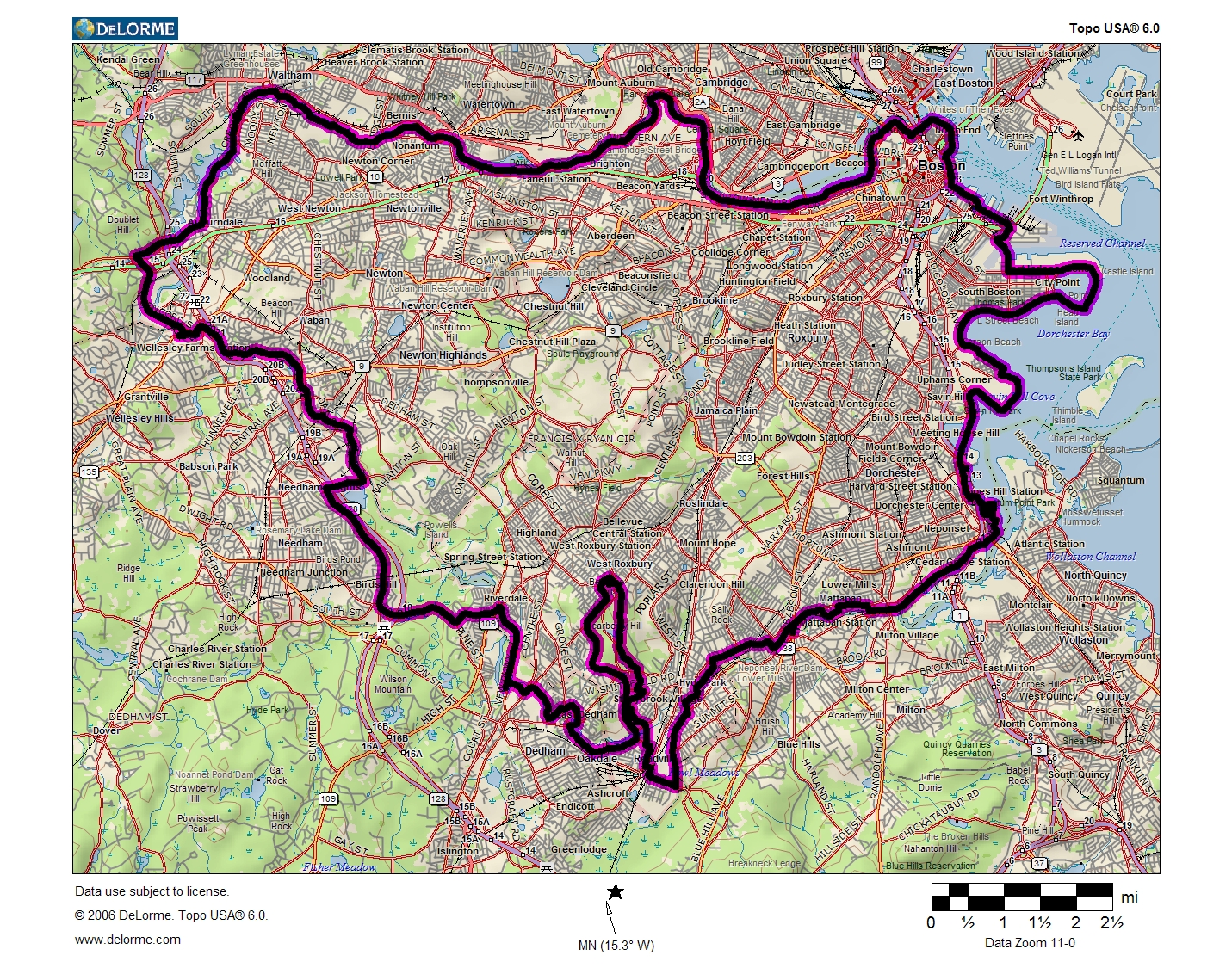 Map of our route around Boston |