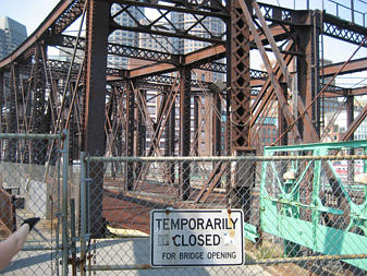 The Old Northern Ave. Bridge swivelling open for boats |