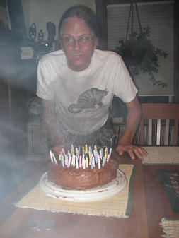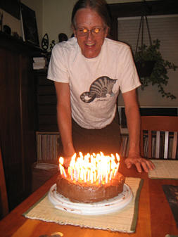 Doug and his 55 candled cake (By Sarah Mink) |