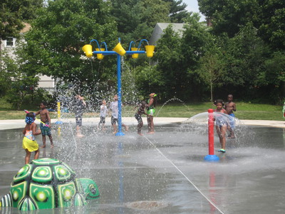Ryan Playground Spray Pool Opening, Neponset Trail, and a Bridge