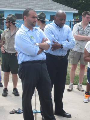 getting people to leave the cool water on a hot day to look at the route of the future trail