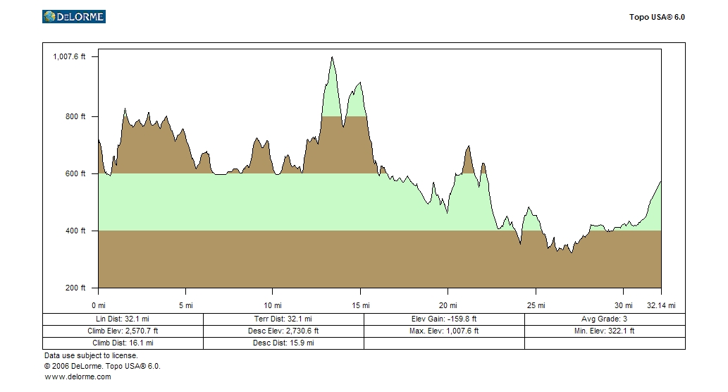 Altitude profile along route, start at left |