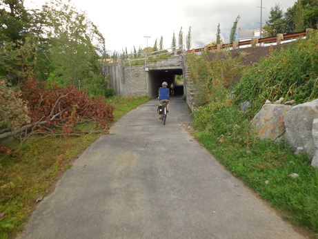 Rail Trail from Alewife Station in Cambridge to the wonderful tunnel at the redeveloped