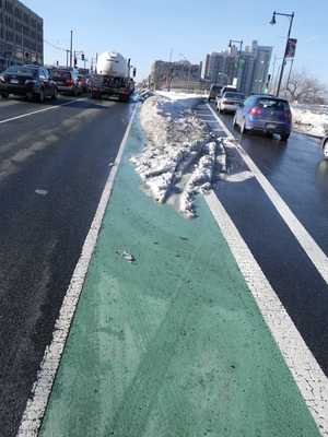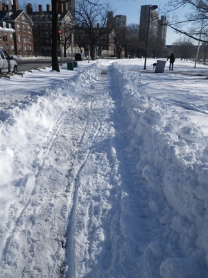 Snowy Bikepaths in Boston, Brookline, and Cambridge