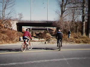 Riding the Upper Charles Trail under I-495 in Milford