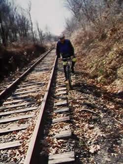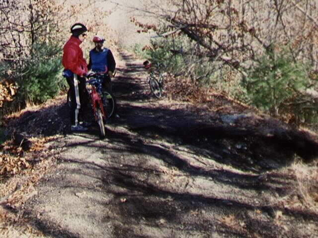 Riding along "single track" on the Upper Charles Trail