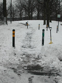 (Before these bollards were removed, a plow