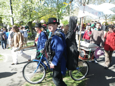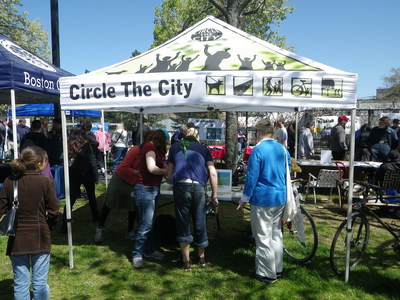 Wake Up the Earth in Jamaica Plain is one of my major celebrations every year, where I get to meet neighbors and activists, even fellow soccer parents from 15 years ago. But it's nice to have a base, and this year it was the Circle the City tent, where we told people about our project to close down a few major streets in Boston for a day. This year, it looks like Huntington Ave. on July 14 and Blue Hill Ave on September 29. It was great to talk about something which almost everyone thinks is a great idea!