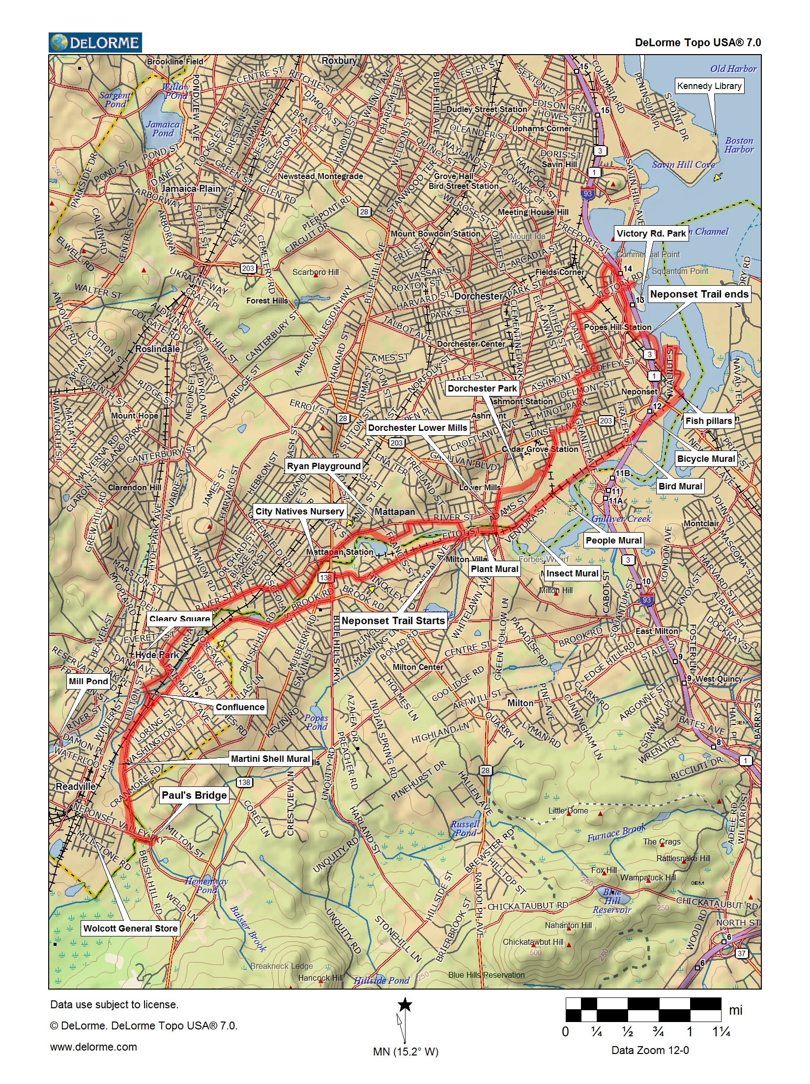 Park and Phillips' Candies, we'll follow the Neponset Trail back to