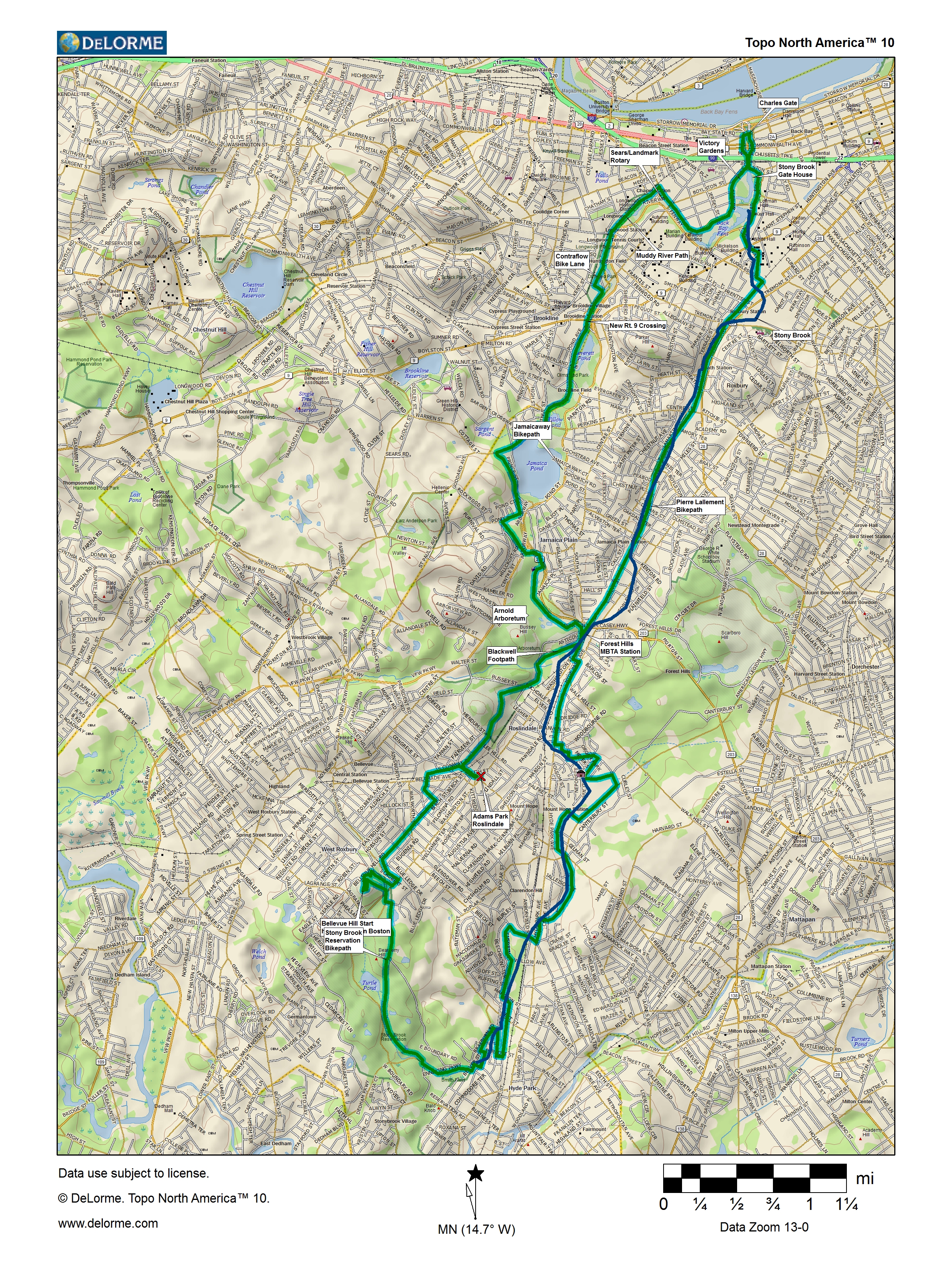 Photos of the 2017, 2013, 2010, and 2007 RidesGetting To the StartAdams Park in Roslindale Square, the center of a triangular rotary formed by the intersections of Washington, Poplar, Corinth, and South Streets. Cummins Highway, coming from the east, dead ends into the park, too. It is about one mile south of the Forest Hills Orange Line MBTA station.Bellevue Hill is above the highest point on Washington St., about a mile south of Roslindale Square (and a couple of hundred feet higher). The West Roxbury and Enneking Parkways intersect with Washington St. here. By BikeFrom the North: Take the Southwest Corridor or the Emerald Necklace paths or the Ornage Line to Forest Hills, then follow the Washington St. bike lanes to Roslindale Square or Bellevue Hill.From the East: Come through Franklin Park to Forest Hills and follow the Washington St. bike lanes, or take Cummins Highway from Mattapan. From the South: Take Washington St. or Belgrade Ave. to Roslindale Square. For Bellevue Hill, take either Washington St. or the Enneking Parkway to the light, then turn left (or go straight from Ennieking) on the West Roxbury Parkway and take an immediate left onto the paved path. From the West: Take Lagrange St. from Brookline to Centre St. in West Roxbury. Turn right, then take a right on Belgrade just before the rotary, and follow that to Roslindale Square. To get to the summit of Bellevue Hill, turn right off Centre onto Bellevue, go uphill until it ends, then turn left and stop at the gate on your right. |